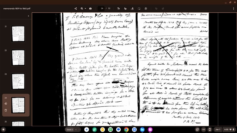 Joseph Warren Revere's memoranda replacing the first Chesterfield Bell with the 1815 Revere Bell.