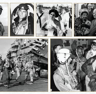Tom graduated from the United States Naval Academy and Jesse from the Ohio State University. Soon after, Tom Hudner and Jesse Brown were trained to fly as a team at the Quonset Point Naval Air Station in the spring of 1950. Jesse was married, Tom was searching. The Korean War had not begun. Their first port of call was Nice, France, on the Riviera. Elizabeth Taylor, the decade’s hottest starlet, was in Cannes for the film festival. While sun bathing on the beach she was approached by one of Leyte’s marines on liberty. She responded positively and that led to a cohort of more marines engaged in a typical friendly star gazed discussion. She invited them to a 4:00 o’clock tea at her hotel. Tom and Jesse had no knowledge that the Marines from the Leyte had such a lucky moment. Jesse and Tom happened to walked into to the same hotel and sat down for a drink, feeling awkward in such a sophisticated environment. Both flyers were stumbling over a four o’clock refreshment when Elizabeth Taylor walked up to their table. Just a bit of good luck for the flyers. They would meet Elizabeth again that night at the casino, she would visit their ship later in the week.