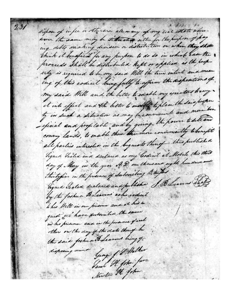 Joshua Bayley Leavens Last Will and Testament