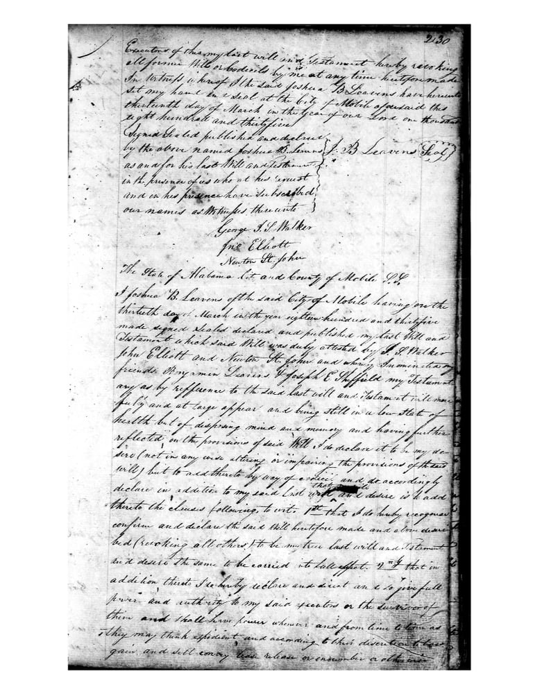 Joshua B. Leavens, last will and testament is available by clicking on this line.