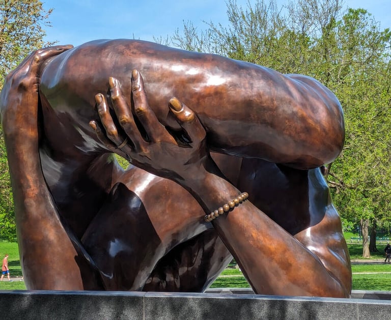 The picture below was the inspiration for the Embrace sculptured by Hank Willis Thomas, situated on the Boston Common.