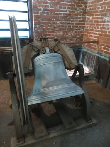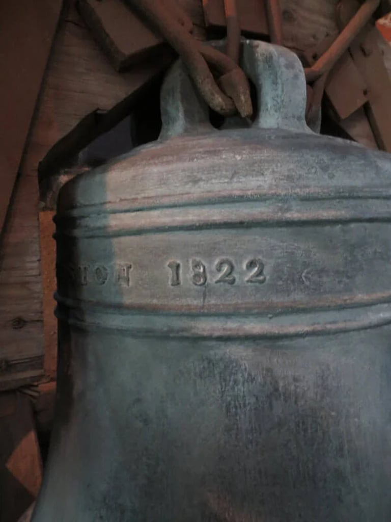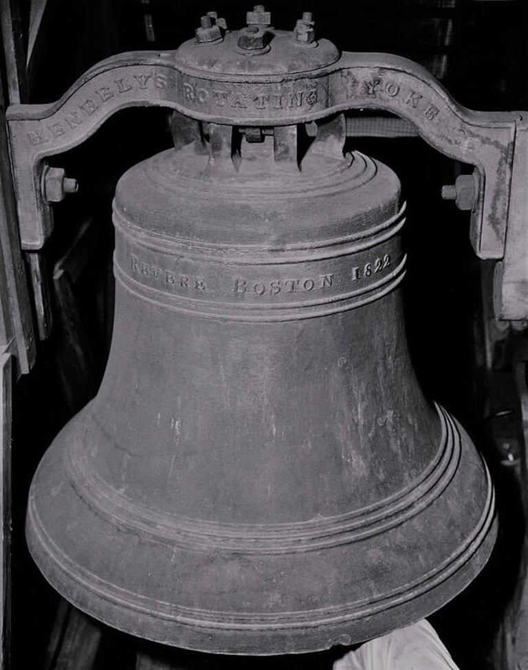 Revere Bell of 1822, cast in the tone of A, weighing 938 pounds, with its tongue weighing an additio