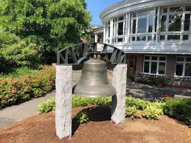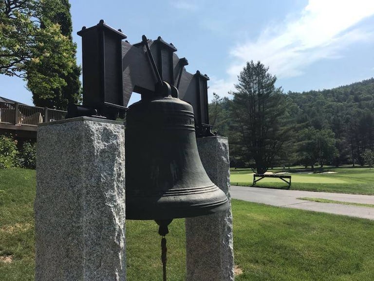 4 images of the 2 bells restored by the Woodstock Inn to their public viewing.